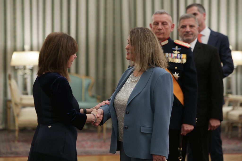 Προσέλευση της Προέδρου του Νομικού Συμβουλίου του Κράτους κ. Ευγενίας Ε. Βελώνη στο Προεδρικό Μέγαρο για την υποβολή ευχών στην Α.Ε. Πρόεδρο της Δημοκρατίας.